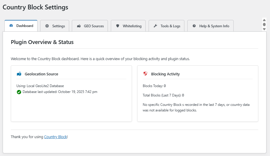 Yes, Country Block provides incredible value for free. It uses the MaxMind GeoLite2 Free-tier database, meaning there are no per-query API limits or hidden costs for the geolocation service.